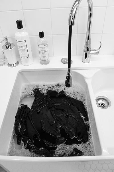 - Faire tremper dans une eau froide à tiède (environ 30°c) avec un peu de savon doux, ne pas laisser plus de 20 minutes.